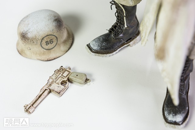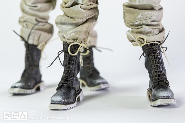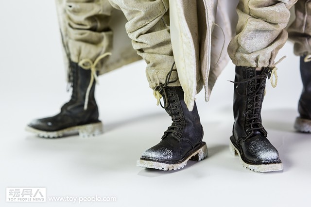 ▼ 鞋子的部分則是採用近期比較常使用的長筒軍靴,而在塗裝的部分則是搭配著雪落在靴子上一般的造型來呈現,可說是非常的逼真啊。