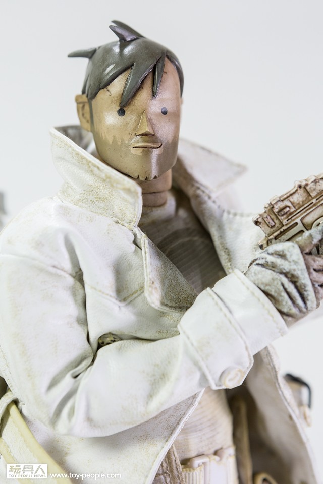 ▼ 這次兩款角色的素體是採用寬肩的素體,而在T-shirt 的材質部分也與過去的不相同,是採用比較有彈性的材質來呈現。而在T-shirt 上圖案的部分,「POST FIRE」Ashley Wood 的是守日(DAYWATCH)的經典LOGO,而在「THRICE NAUT」Kim 的部分則是採用守夜(NIGHTWATCH)的LOGO。