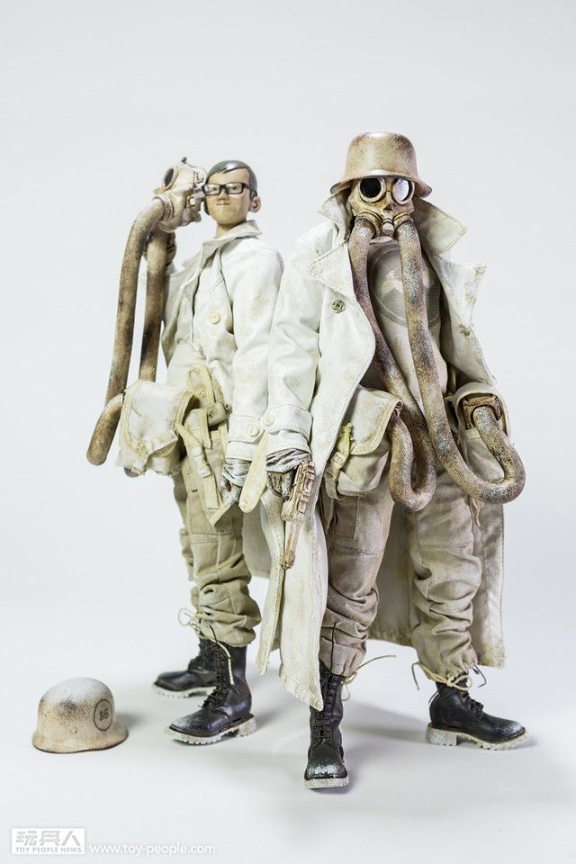 N.O.M. COMMANDER 系列雙人組合包的兩個角色分別為:「POST FIRE」與「THRICE NAUT」。據小編所了解,POST FIRE 表示著當火燃燒完之後所產生的灰燼,也與設計師Ashley Wood 簡稱Ash 有著一語雙關之處,所以「POST FIRE」角色就代表著設計師Ashley Wood。而「THRICE NAUT」則是代表著Kim,小編推測可能是因為其可以被翻譯成三個圓圓的果實,這也意味著threezero 品牌,因此,「THRICE NAUT」這個角色就是Kim。
