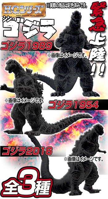 日BANDAI萬代玩具公司的轉蛋事業部門GASHAPON的HG「角色人物系列」HGフィギュアシリーズ,將一樣在八月暑假推出「正宗‧哥吉拉」シン・ゴジラ系列轉蛋作品,預計收錄有1954年、1989年和今年2016年最新版的哥吉拉,目前先行公開情報圖片和原型照片等等。