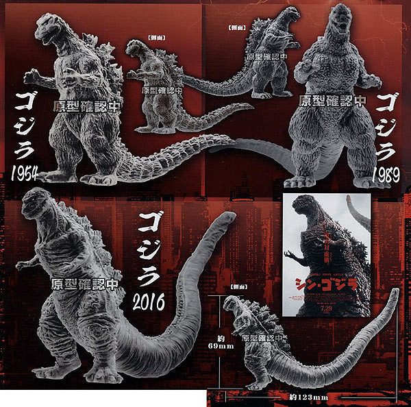 2016年8月5日新增官方宣傳圖片與販售相關資訊,伴隨著《正宗‧哥吉拉》已經在日本正式上映,廠商近日終於公開這次轉蛋的商品宣傳照片,哥吉拉2016年版本有長度達到約120mm左右歐!以約300元日幣單價的作品來說真是十分超值啊!希望台灣也快點引進這個轉蛋作品,讓台灣喜愛《哥吉拉》系列的玩具人可以快一些轉到!