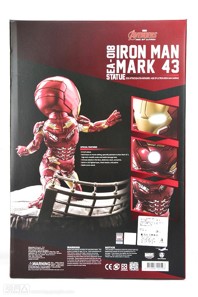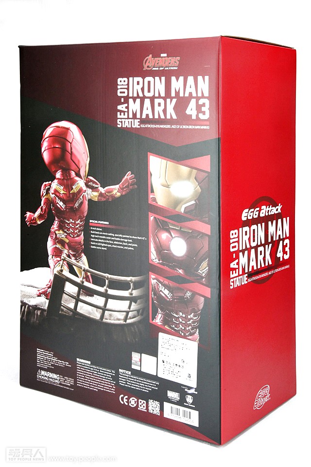 Egg Attack 系列會成為全球鋼鐵人迷們熱愛的作品不是沒有原因的! 台灣本土的品牌野獸國相當用心地刻畫出了這個超高水準的雕像作品,從包裝外盒設計、內側包裝保護設計開始就令人充分感受到其用心的程度;作品本身除了帥氣的姿勢之外,大量考究的造型細節,細緻逼真的塗裝效果更是令人大呼過癮~ 光是作為收藏擺設都極具存在感! 絕對是各位鋼鐵人迷不容錯過的精彩傑作!