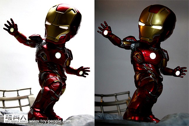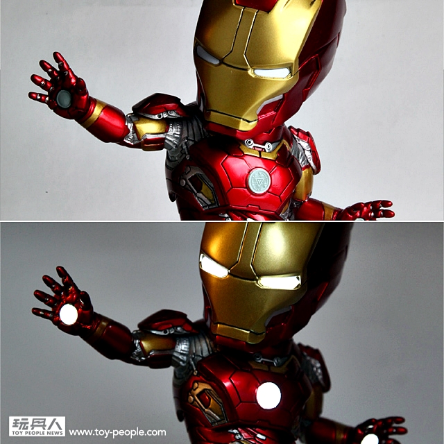 ▼ 接著我們來看看發光的效果吧。 野獸國的鋼鐵人商品有一個特色,那就是發光的機制表現得非常優異,穩定、均衡的發光,並且亮度與持續時間都很高。 除此之外,藉由使用特殊材質,胸口的弧形反應爐在不發光時能夠看清楚內部的紋路,而發光時候又能呈現出極高的輝度,非常用心的設計。