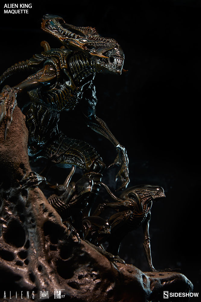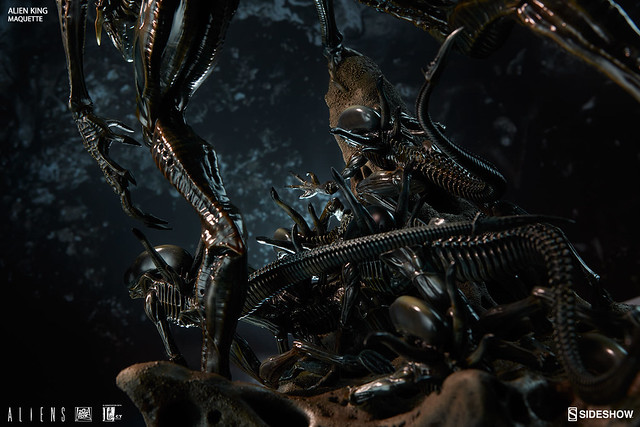 這次SideShow 所推出的「異形之王」,是與擔任《異形》特效的特效團隊「Legacy Effects」合作,設計出這一款精彩的原創作品。超巨型尺寸的異形之王跨出巢穴,並帶領著腳底下竄出的異形士兵們,找尋下一個獵物...。充滿魄力的異形之王全高約21英吋(53公分),由知名好萊塢特效團隊將這個傳說中的異形立體化,並藉由Sideshow 多年來製作異形作品的經驗與技術,精彩的重現了逼真、生動的質感!這絕對是值得各位《異形》粉絲們入手的精彩傑作!