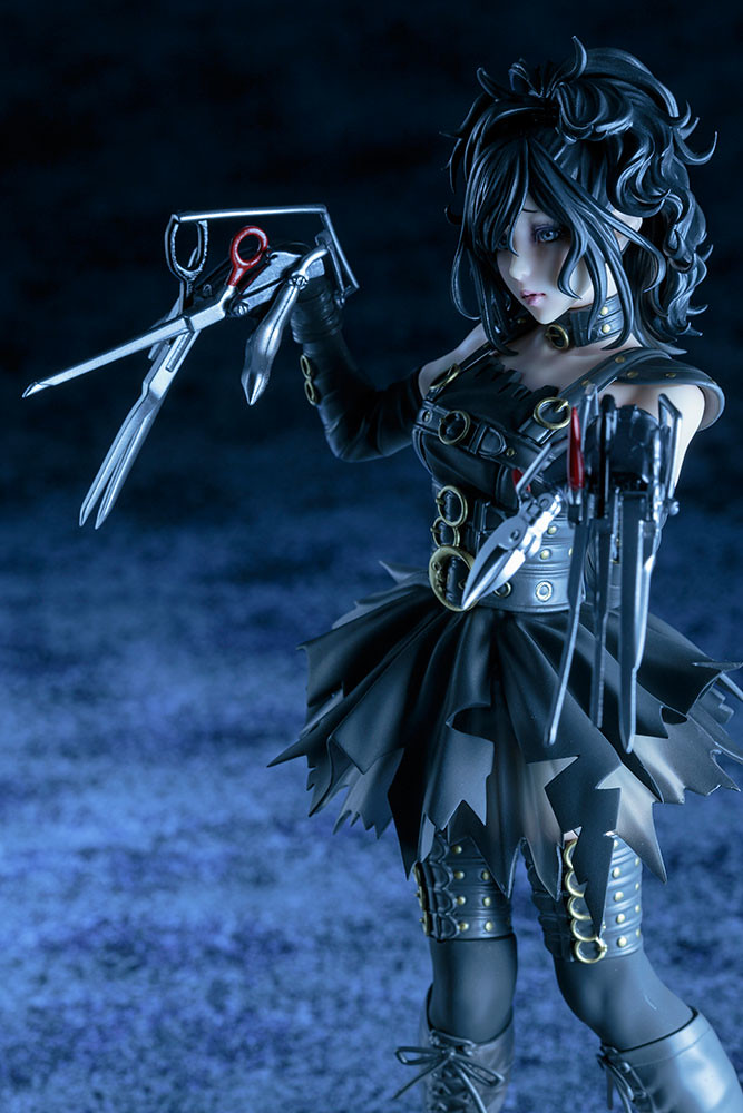 這次所推出的作品,由山下俊也將剪刀手愛德華以性轉換的方式來重新詮釋,巧妙地以女性的造型呈現了「剪刀手愛德華」的服裝造型、一頭亂髮以及經典的憂鬱神情。其中一大賣點在於剪傷了自己而破爛的裙子造型,並採用特殊的透明材質來呈現紗狀材質襯裙,另外關鍵的剪刀手、服裝設計也藉由塗裝來呈現質感的差異。最後,使用了劇中經典的冰雕雪景場景來製作地台的造型,將整部作品最令人難忘的元素凝聚在一個角色上。