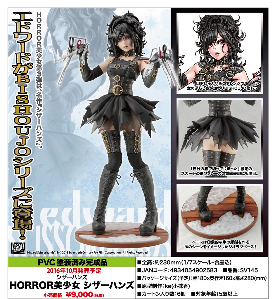壽屋與知名插畫家山下俊也(山下しゅんや)所合作的美少女系列作品,每個系列都暢銷熱賣並擁有許多粉絲珍藏。 許久沒有推出新作的「電影狂魔美少女系列」(暫譯,HORROR美少女),宣布將推出第三彈「剪刀手愛德華」。