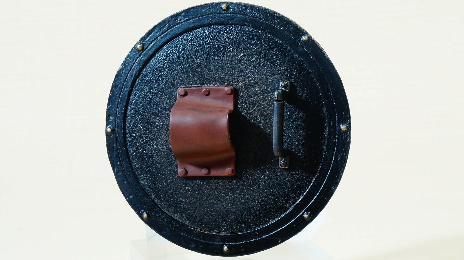 裝備盾牌時內側的皮革套腕與把手並非直接套入,而是以拆下的方式再行安裝