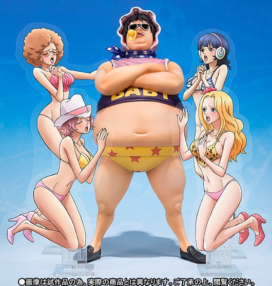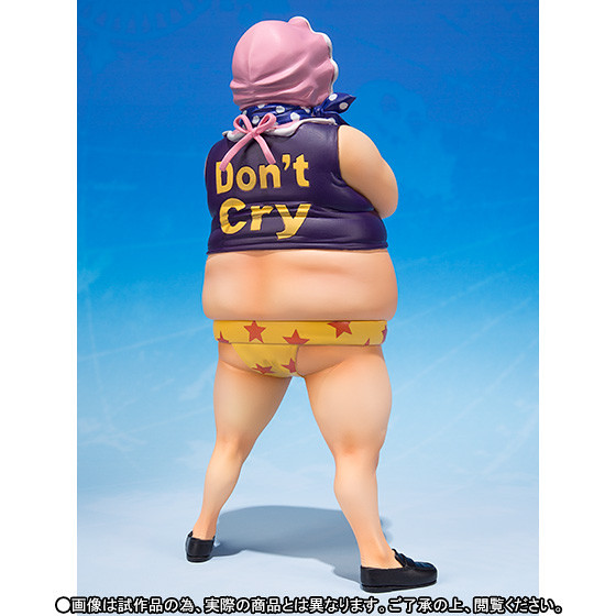 值得一提的是,這次Figuarts ZERO 所推出的「粉紅先生」作品在細節雕刻的部分非常細膩,特別是在衣服上BABY DON'T CRY 的字樣因為擠壓而產生皺褶的樣子;此外,還有附上在動畫中身邊出現的四位崇拜粉紅先生的女性的背景圖卡,搭配起來時在是太讚了啊!!喜愛海賊王的玩具人不要錯過啦!
