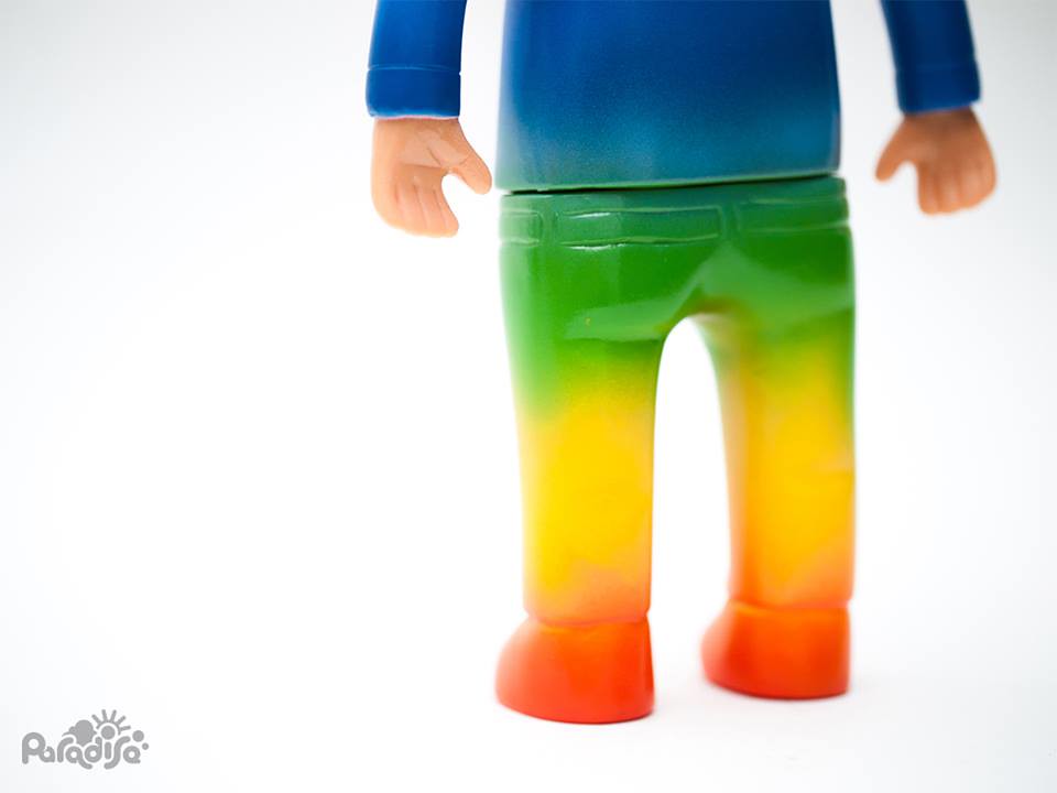 而這次將要販售的限定商品主題為「Paradise Sunrise」,採用有如日出一般漸層作為設計主軸,帶來了這款穿著漸層衣褲的「Satoshi」,同樣以日出為靈感的發想,轉化為略帶幽默的牙買加風格造型,替上班族大叔「Satoshi」呈現了前所未有的全新風貌。