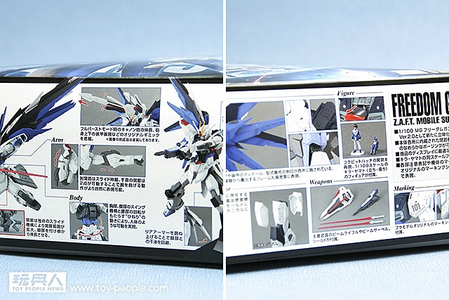▼盒面邊圖特別註記了這次自由鋼彈Ver.2.0的一大特色,各關節的可動幅度都較之前高出許多。手臂部位還可以完全對折啊!