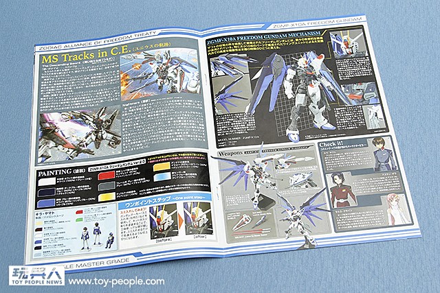 ▼說明書的內彩頁,不改以往使用模型擺出動畫名場景,以及塗裝參考用色表。