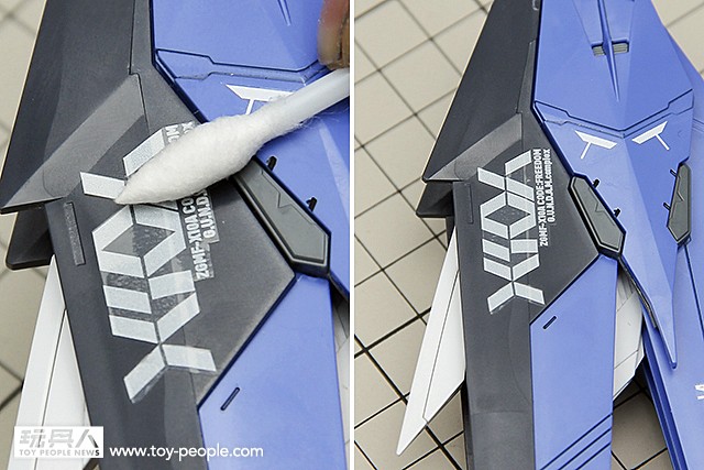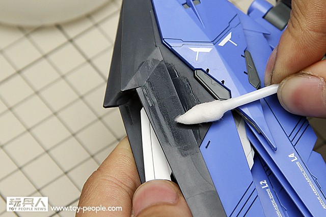 ▼首先用棉花棒沾酒精將零件表面做擦拭,由於我們在打磨的過程中可能會將油脂、粉塵等沾黏在零件表面上,這些都會妨礙貼紙的黏著性。因此必須將表面清潔乾淨。