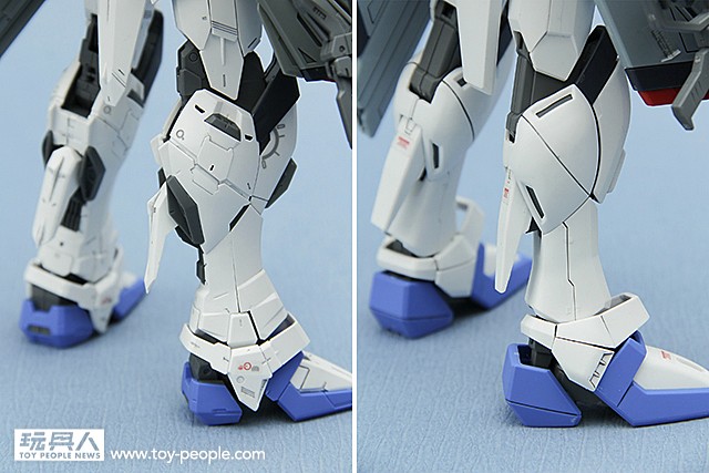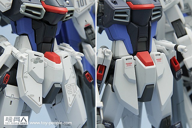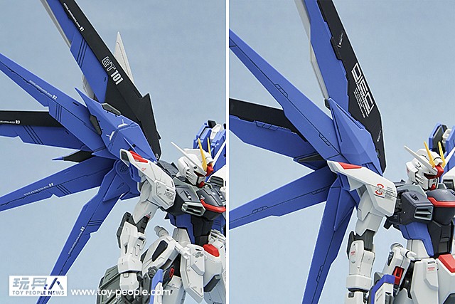 ▼比較可惜的是底座使用2004年的模組。而在裙甲與背包上很用心的標註自由鋼彈的編號與陣營,是要我們連貼紙也不用貼的意思嗎!?