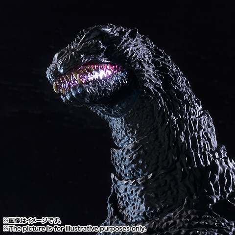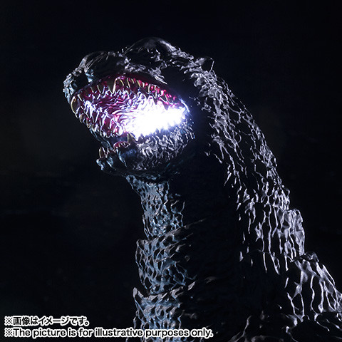 “輝” - 哥吉拉的口內以及背部裝設了LED 發光機能,藉由使用透明材質進行塗裝之後,能夠呈現出哥吉拉必殺技「放射熱線」發動時,嘴巴以及背部發光的模樣。
