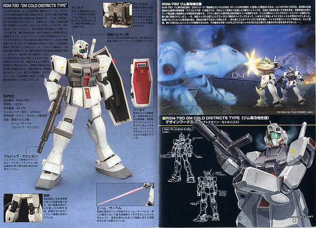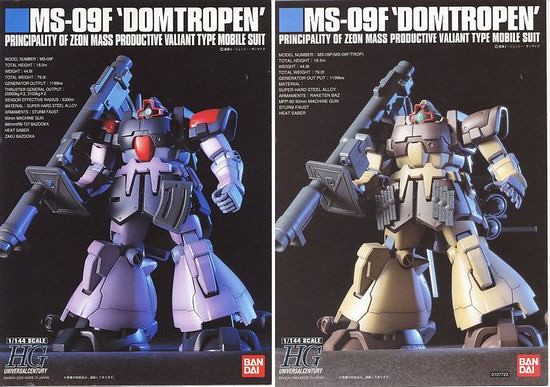 在《機動戰士鋼彈0083:星塵回憶》登場的德姆熱帶型,針對沙漠地型,特別在腳部的飛行氣墊加設了過濾裝置。有紫色與沙漠色兩種配色。 HGUC 1/144 EMS-10 茲達,出自《MS IGLOO 一年戰爭秘錄》,消逝於歷史中的幻之實驗機。線條不規則的宇宙迷彩是塗裝上的一大特色。