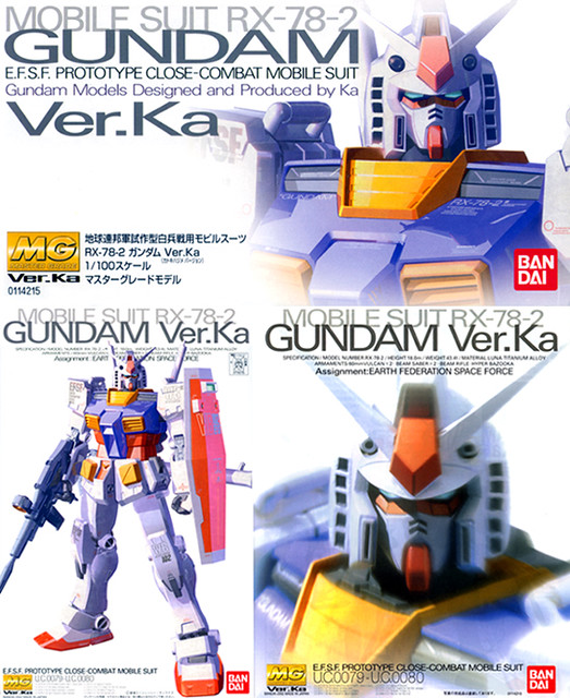 角木肇所設計的MG RX-78-2初代鋼彈Ver. Ka,在比例與細節上和動畫版有明顯的差異,例如寬闊的腳底版、加大的肩膀、進氣口的設計,都相當有卡版的個人特色。