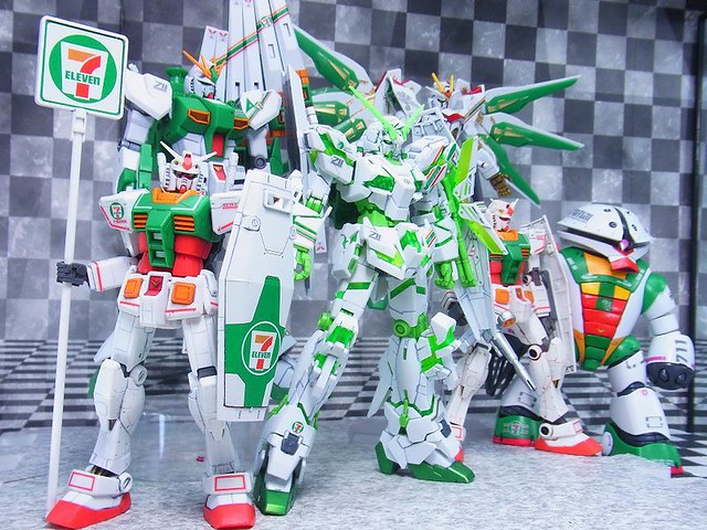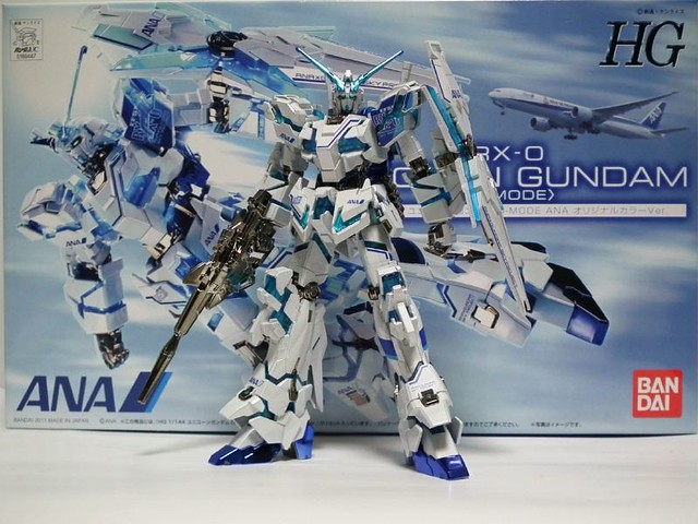小七一直是鋼普拉的好朋友,每隔一陣子都會推出7-11限定版模型。紅、綠、白三種配色,再加上小七logo,讓人忍不住想唱:「有7-11真好~~」 鋼彈與ANA全日空合作推出的HG獨角獸鋼彈,果然是可能性之獸,萬變百搭,換個顏色就是新角色。