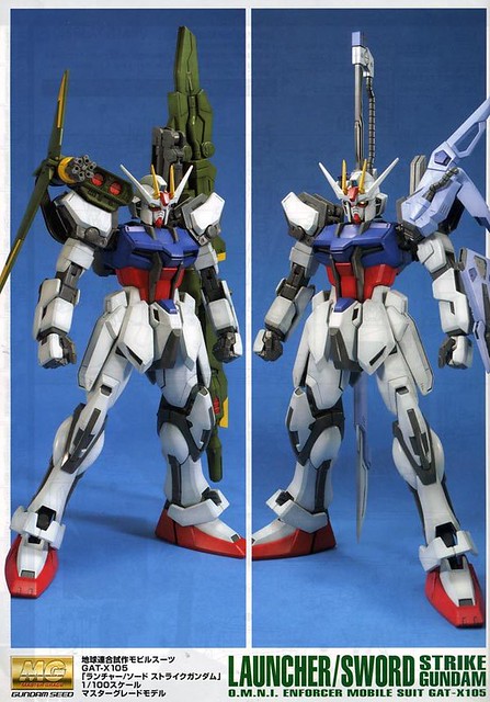 MG Perfect Strike完美攻擊鋼彈,把翔翼型、巨劍型和重砲型三個裝置全部背上身,除了背包太重腰挺不起來之外,真是找不到任何缺點了。 出現在《鋼彈 SEED MSV》外傳設定的I.W.S.P.攻擊鋼彈,IWSP是Integrated Weapons Striker Pack統合兵裝型攻擊者背包的簡稱,有砲、有劍、有翅膀,總之也是一個要你命三千集一身的概念。