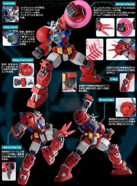 《機動戰士V鋼彈》二代主角機V2鋼彈,可加裝Assault武裝成為V2突擊鋼彈或Buster武裝成為V2破壞者鋼彈,甚至可以AB武裝一起來,成為V2突擊破壞者鋼彈。 MG翔翼型攻擊鋼彈Ver. RM。攻擊鋼彈所搭載的Striker Pack System攻擊武裝系統,可以藉由替換背包,進行各種不同任務。這個系統也可與Dagger、Dagger L型、Windam等衍生機共用。