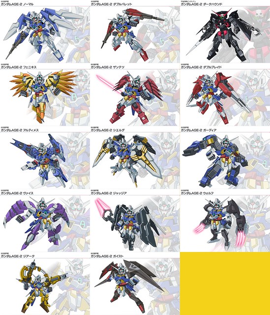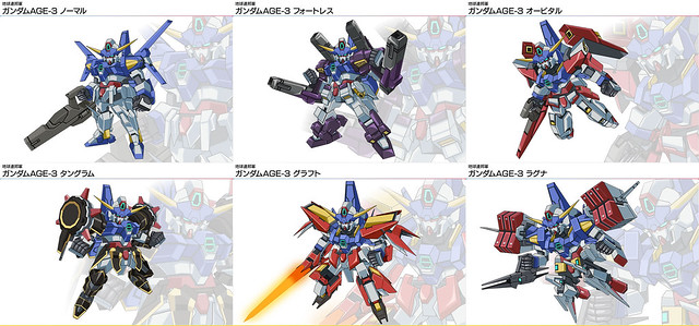 鋼彈AGE-3的各種變裝型態,立體化的更少,連基本型都沒有推出MG,相當令人殘念的一個系列。