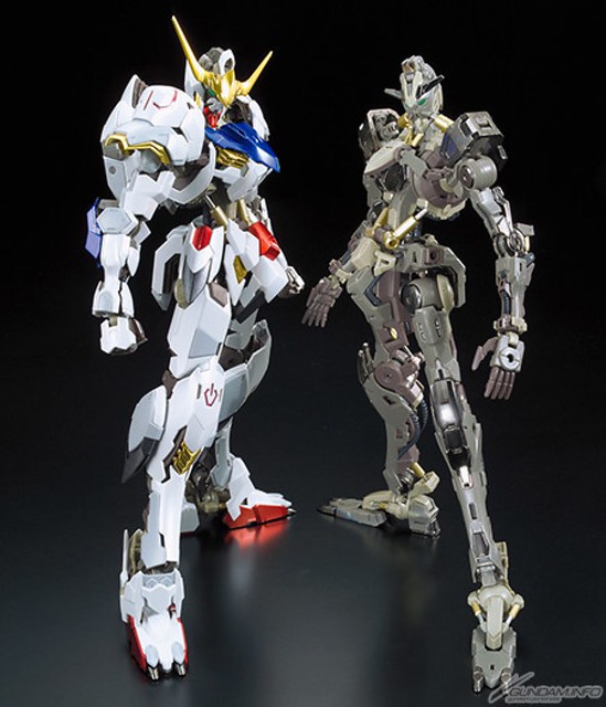 在《機動戰士鋼彈UC》第7話登場的剎帝利修補版,右腿變成義肢,左手拿斧頭來補,四片盾牌只剩兩片,背後加裝了大型燃料槽和推進器,遍體鱗傷的感覺很能象徵瑪莉妲的悲劇性格。 1/100 HIGH-RESOLUTION MODEL獵魔鋼彈,首次採用了可動骨架完成品的概念,外部裝甲以珍珠色、金屬色、透明色等塗裝成形,只要剪下零件裝上骨架就完成了。其實骨架才是本體啊。