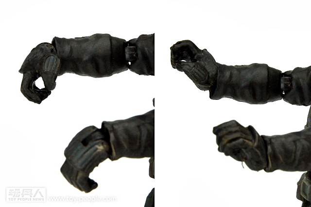 ▼ 手部的關節。以往的角色都是戰鬥單位,所以為了能夠做出持槍的動作,手腕的關節設計成一個左右一個上下。 但是邦男大叔沒有持槍的動作,所以統一都設計成容易抓握操縱桿的左右設計。