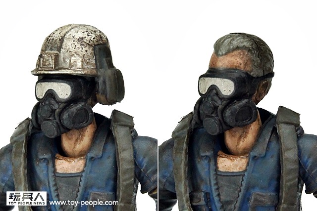 ▼ Kit 總是會為他的粉絲帶來驚喜。這次所發行的邦男大叔,其實是能夠脫掉頭盔,露出底下的灰白頭髮的喔! 而且頭盔下還能看到防毒面罩的束帶,造型的刻畫十分生動。