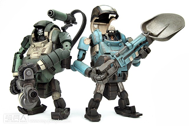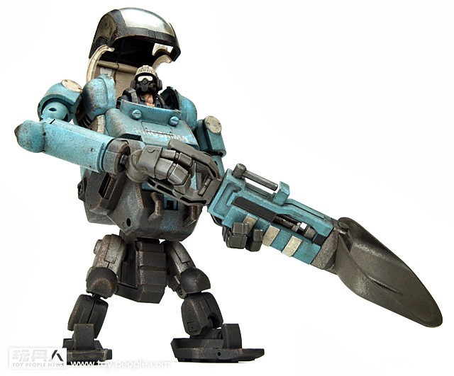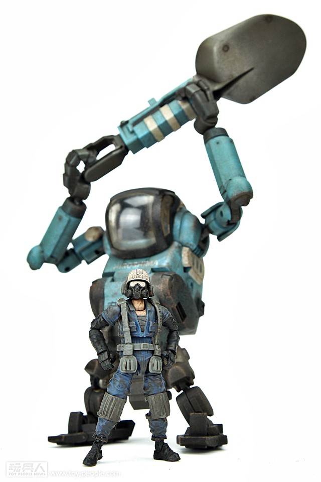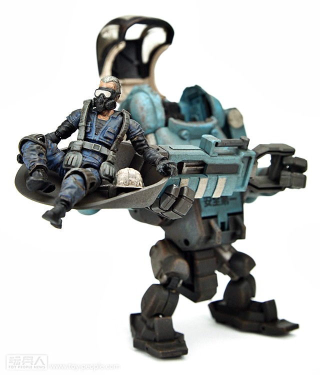 ▼ 關於可動性的解說,可以參考我們上一篇Laurel 海軍陸戰隊配色 開箱報告:http://www.toy-people.com/?p=29166。這樣高度靈活性的人形載具,不論是戰場上,在工事現場也能夠相當活躍而有著精彩的表現。