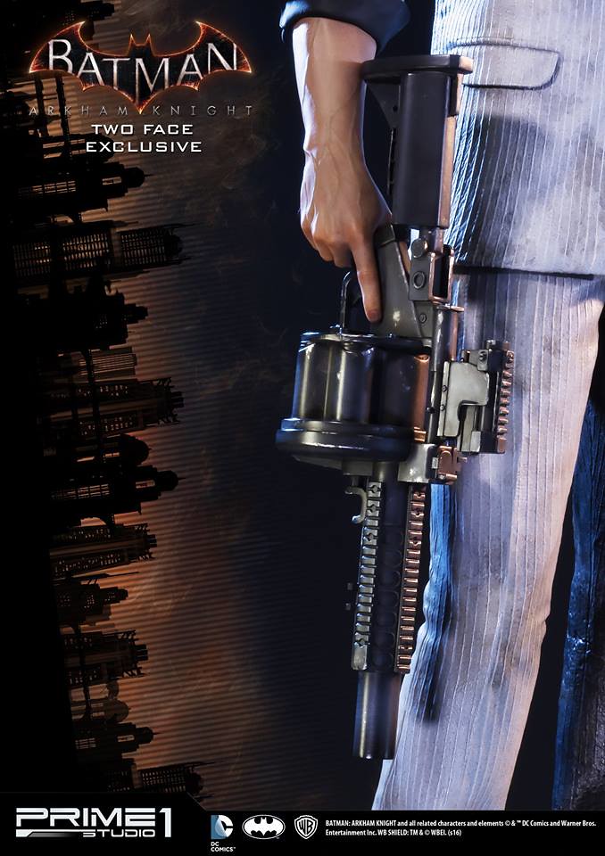 日本新興雕像品牌「Prime 1 Studio」公司又將要推出其最新由華納兄弟互動娛樂公司(Warner Bros. Interactive)與 Rocksteady 工作室(Rocksteady Studio)聯手打造的史上最暢銷的超級英雄改編電玩的「蝙蝠俠:阿卡漢騎士」(Batman: Arkham Knight)系列雕像作品的作品:「雙面人」(Two Face)1/3 比例超巨大全身雕像。