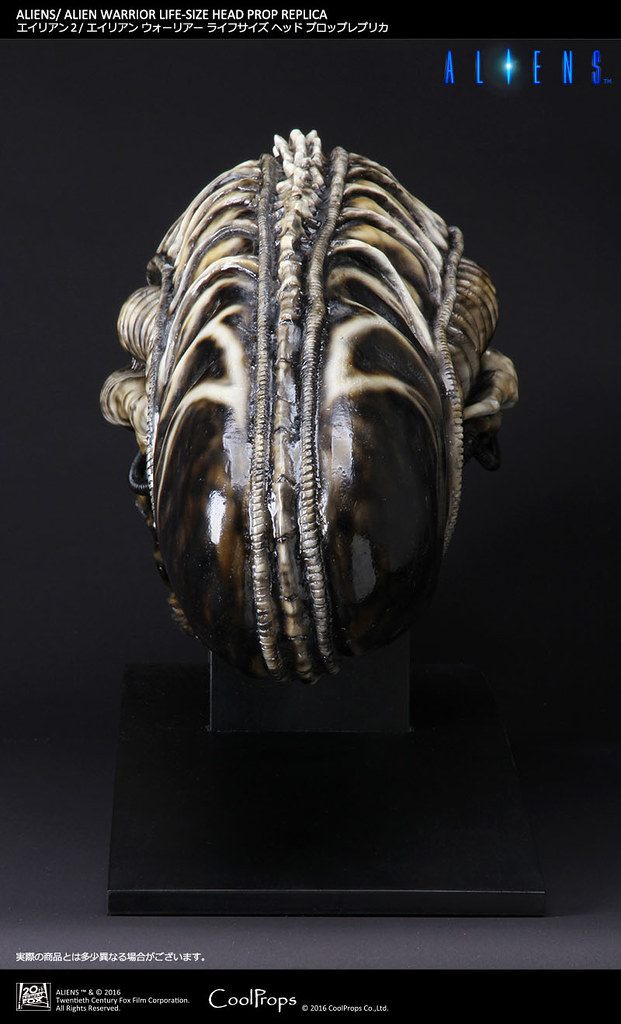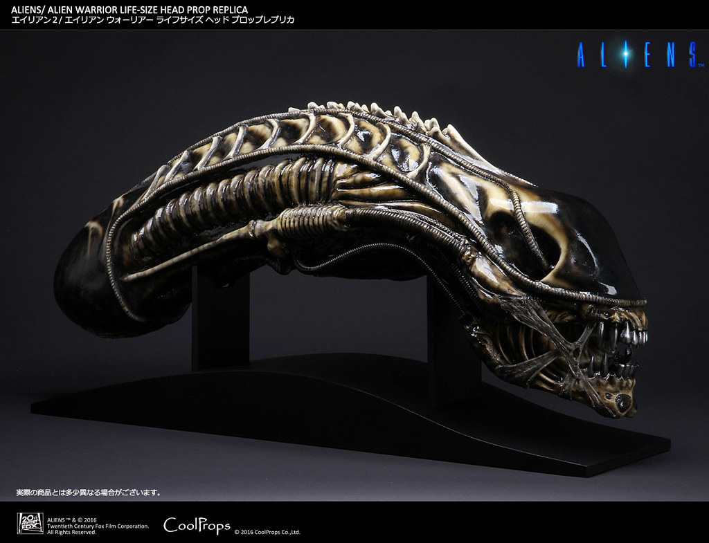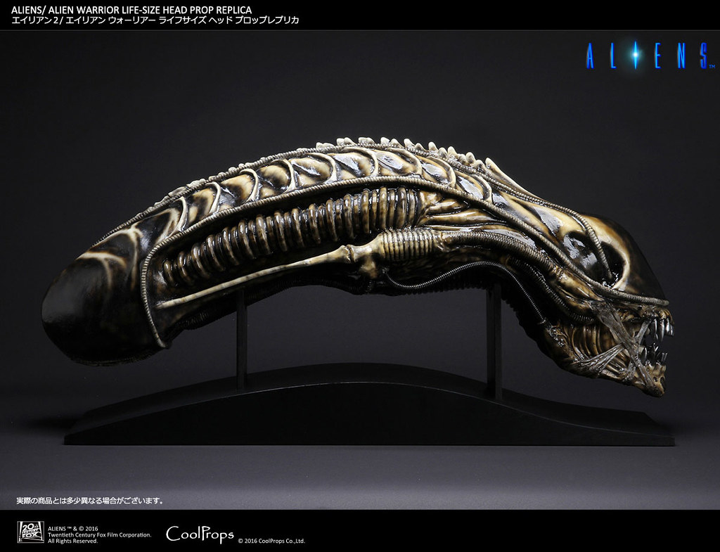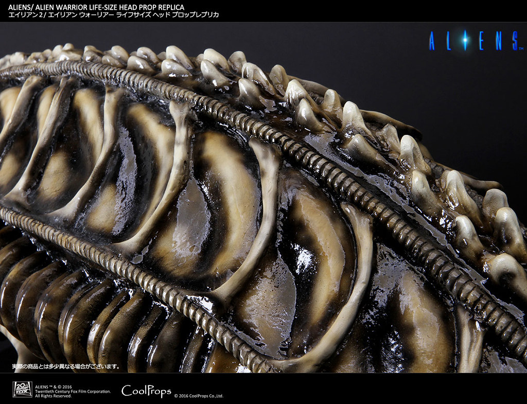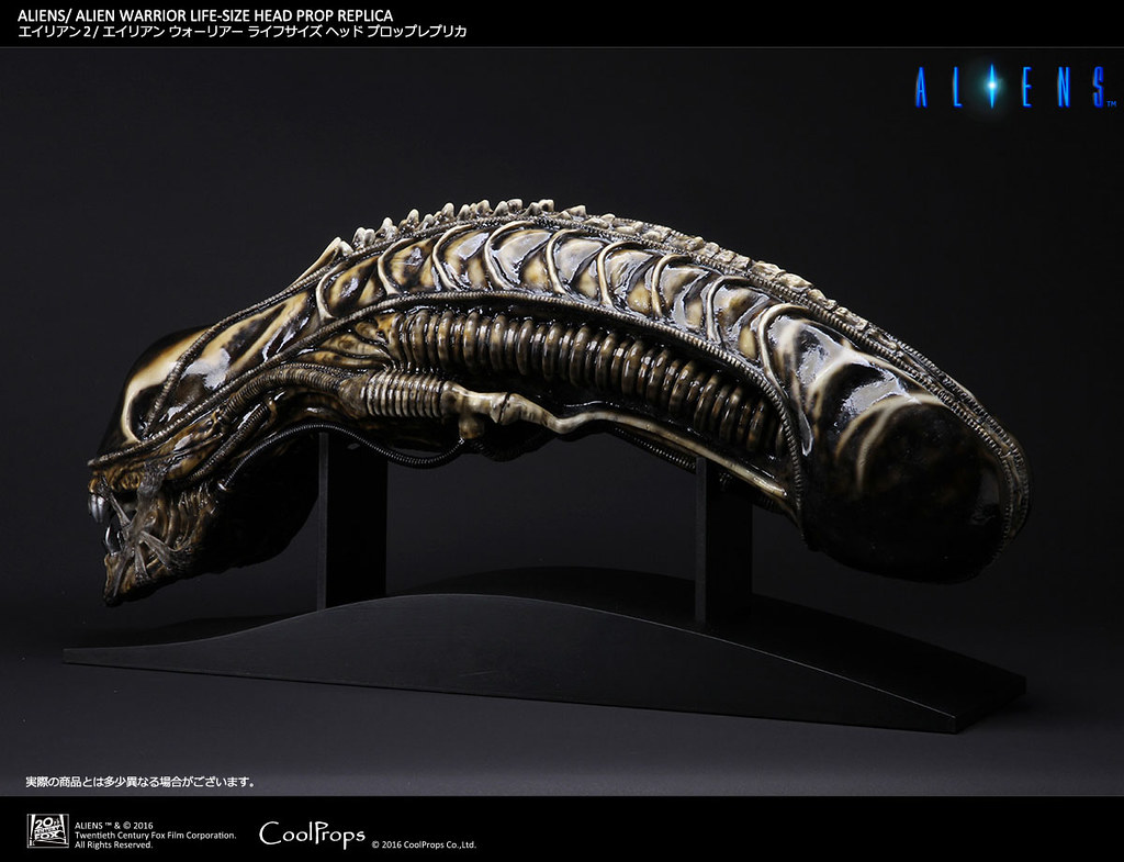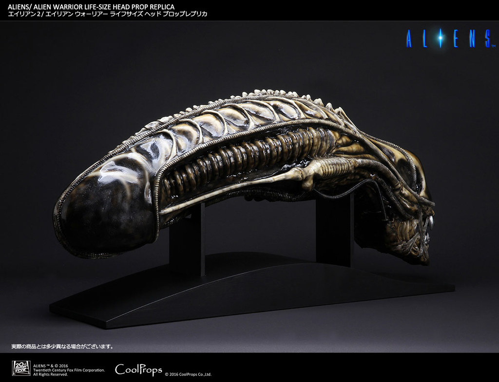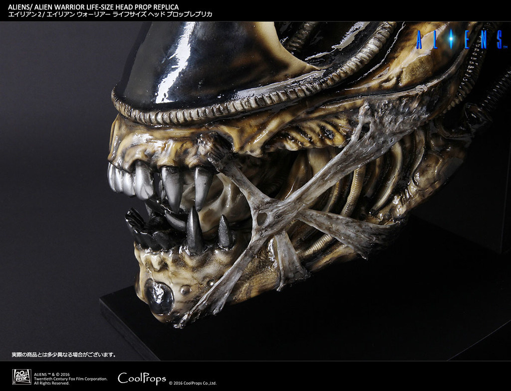在電影異形2(Aliens)上映滿三十周年的同時,日本新興的電影道具複製品「CoolProps」品牌繼推出了電影中登場的藍色版本的「異形戰士」頭像作品之後,又將要推出正常版本的「異形戰士」(Alien Warrior)的1:1 比例複製複製頭像作品啊!而正常版的塗裝更給人一種不寒而慄的感覺啊!