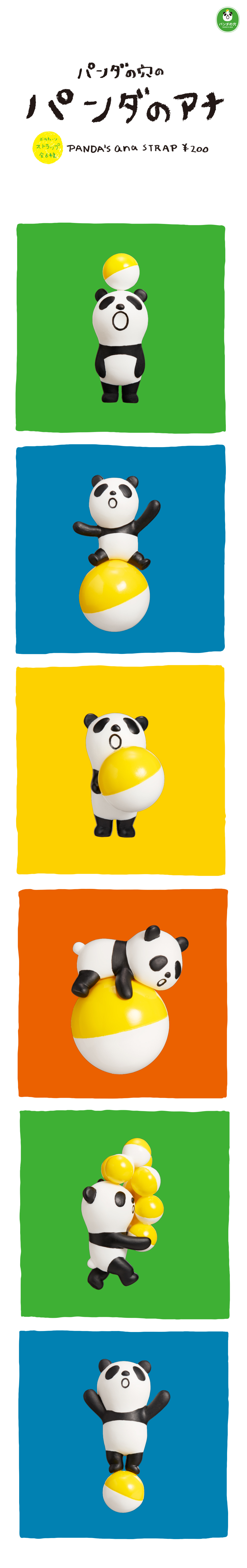 這一款商品的日文原名為“パンダの穴のパンダのアナ”,因而翻譯為「熊貓之穴的熊貓之穴」。本系列將其極具象徵性的熊貓與轉蛋造型的角色,立體化製作為吊飾玩偶,每一個款式與造型都是「熊貓之穴」官網或展覽經常出現的造型,全套一共6種款式,生動有趣的幽默風格,絕對是喜愛「熊貓之穴」品牌作品的玩具人,值得入手的有趣商品啊~