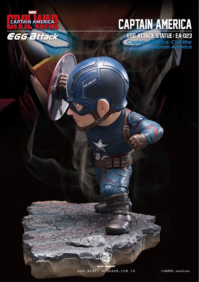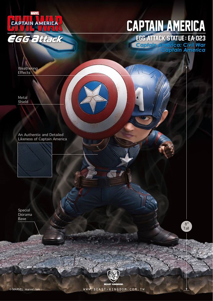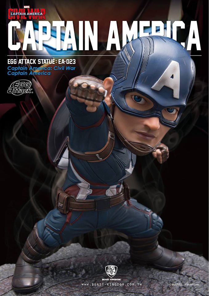 繼之前所推出的浩克破壞者vs. 浩克豪華對戰場景雕像作品之後,野獸國將要在其Egg Attack 系列推出最新電影「美國隊長3:英雄內戰」(Captain America: Civil War)中最新登場的「美國隊長」(Captain America)雕像作品。在經歷過紐約、蘇科維亞等一連串事件後,政府決定設立條款來規範復仇者聯盟的行為,然而因為這條款,復仇者內部開始呈現對立的情形,東尼認為復仇者聯盟應該接受條款的規範,而美國隊長認為複雜的規範條例會成為他們保護世界的絆腳石...
