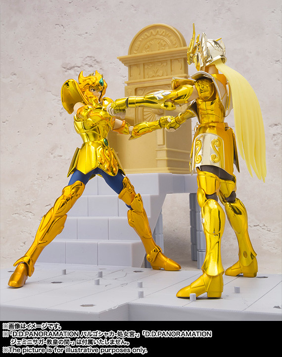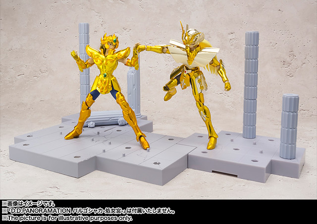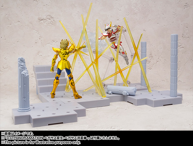 『D.D.PANORAMATION』全名是「Dynamic Diorama Panoramation」意思為“充滿動態的可動場景”,其特色在於使用了約10公分尺寸大小的多處關節可動人偶,再搭配上場景與特效配件,讓玩具人們能夠自由地充分展現原作的各種場景與世界,除了主要登場的五位青銅聖鬪士之外,也同時會推出十分受歡迎的黃道十二宮「黃金聖鬪士」,收齊全部就能堆砌出超壯觀的聖域場景。