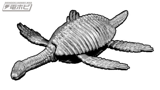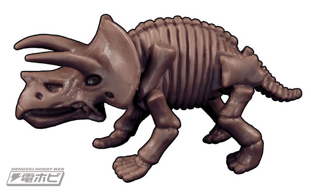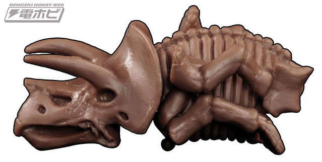 這次「復活的變形恐龍化石」作品共有四款造型搭配銀色與咖啡色共八種樣式,以恐龍化石為主題並且融入了變形的概念來打造出這系列的作品,而這次所推出的四個款式包括了:「暴龍」(ティラノサウルス)、「三角龍」(トリケラトプス)、「蛇頸龍」(ブレシオサウルス)、以及「迅猛龍」(ベロキラプトル);有興趣的玩具人不要錯過囉!