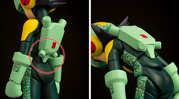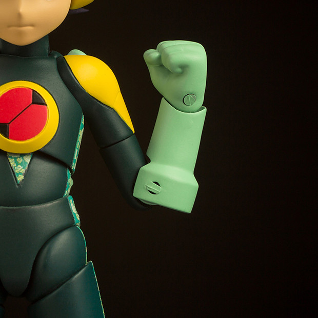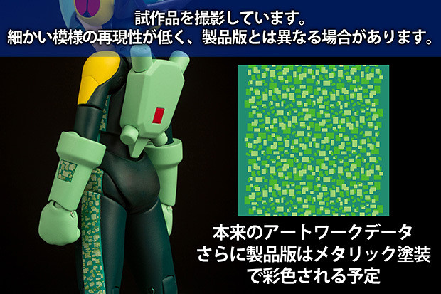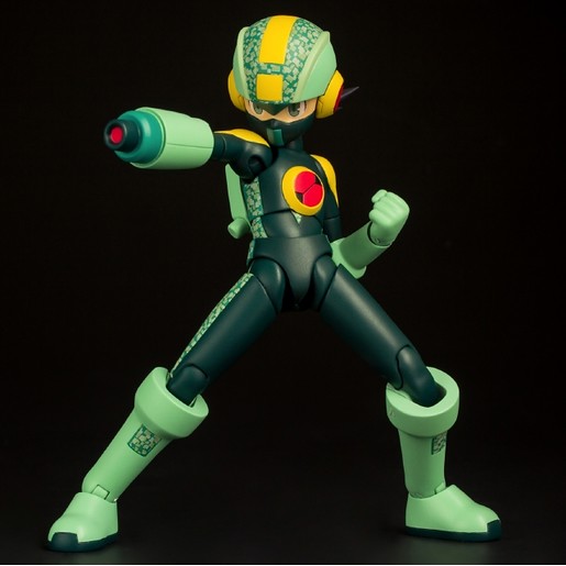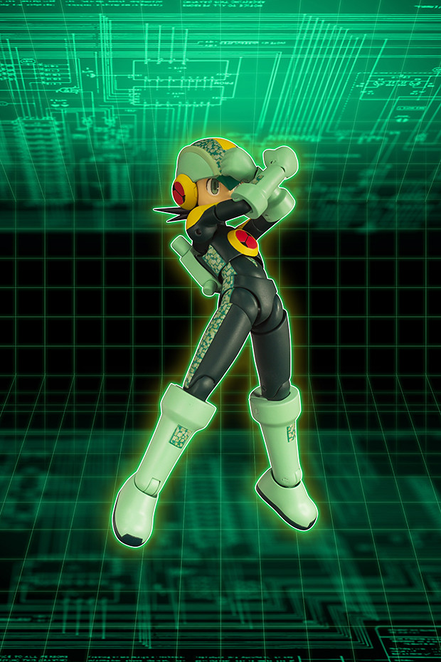 身上有著類似於網路花紋的印刷也相當細緻地表現出來,另外在手腕和小腿等等部位配置的隱藏式關節,能夠讓手臂及腿部做出高折疊度的靈活姿勢,連做出「鞠躬」的狀態也將後腰的隱藏關節製作出來,更能夠讓洛克人EXE不受到造型及裝備的影響,做出多款原作中生動、靈活的姿勢之外,也附有臉部、手首以及洛克炮、劍等等可替換零件,預計於限值練官網在2016年6月1日至7月11日期間接受訂購,喜歡《洛克人》系列作的玩具人可以參考一下歐!