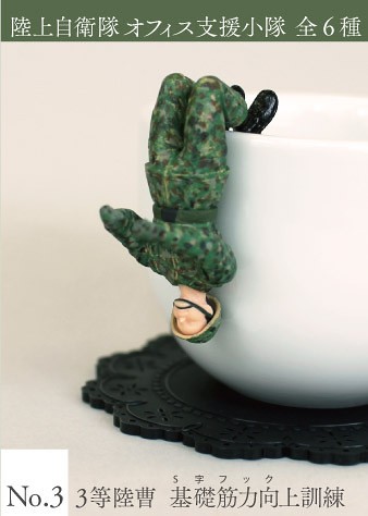 「陸上自衛隊 辦公室支援小隊」(陸上自衛隊 オフィス支援小隊,簡稱JGSDF)是以日本自衛隊為主題設計的辦公室桌上小物盒玩,將執行各種任務的自衛隊士兵的嚴肅、認真姿態,藉由創意巧妙地轉化為各種辦公室桌上小物,看起來彷彿就像是一隻值得信賴的勁旅在支援你的工作!~ 這個特殊小隊一共收錄了6位成員: