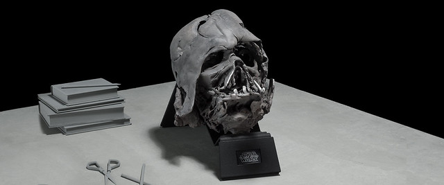 這個系列將推出大量以《星際大戰七部曲:原力覺醒》為主題的道具複製品,其中最受矚目的就是由大反派“凱羅忍”所收藏的“黑武士”達斯‧維德融化的頭盔。 這一具頭盔使用了電影中實際運用的3D 數位檔案來製作,確保了絕對準確的造型,塗裝則是使用高階的數位處理以及嫻熟的工匠來完成塗裝與細節修飾,並且將原版的表面紋路投影在作品的表面,來完整地重現原版作品所有的細節。