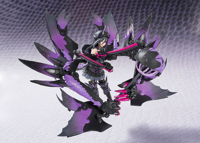 日Bandai萬代玩具公司的ARMOR GIRLS PROJECT系列將推出電玩遊戲《魔物獵人》籠罩大地的黑暗「黒蝕的龍姫」可動作品,之前「AGP系列」成功將“艦娘”主題角色人物都呈現其可動關節的精彩作品,這次以擅長繪製軍武娘的插畫家島田文金(島田フミカネ氏)將遊戲當中「黒蝕龍」ゴア・マガラ 擬人化設計創作出「黒蝕的龍姫」。