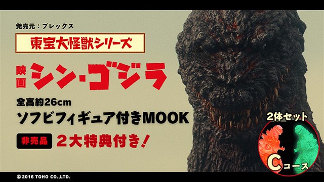 日角川kadokawa出版社擅長推出Mook資訊雜誌,MOOK這個字是將雜誌(Magazine)和書籍(Book)兩個英文單字所合在一起,成為具有獨特魅力的「雜誌書」Mook,這次將以『募集出刊方式』來推出特別刊《東寶大怪獸系列》東宝大怪獣シリーズ 的Mook,並且特典將會收錄有XPLUS公司所製作的2個「哥吉拉」立體作品,造型當然是預計今年7月所上映的《正宗‧哥吉拉》。