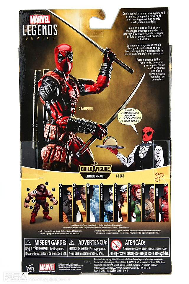 ▼ 接下來就是本系列大家超期待的亂入角色“死侍”啦~ :D 為什麼說是亂入角色呢? 因為Marvel Legends 主題系列通常每位角色都會附有一個BAF 零件以及對應的編號來拼湊出BAF 角色,但是這一款“死侍”完全沒有!根本就是可以獨立發行~ 而且他也不是隸屬於X戰警的角色,根本就是來搗蛋的啊~XD
