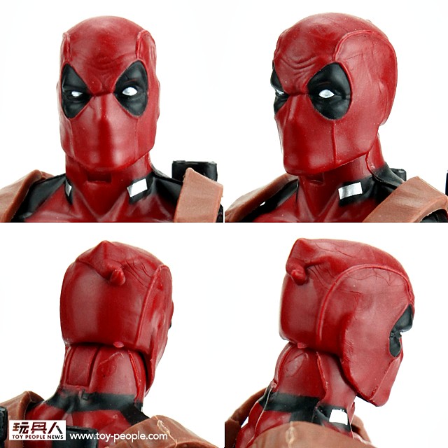 ▼ 死侍的面罩頭雕刻畫了大量的細節,除了挑眉的大小眼眼神之外,還能觀察到眉頭深鎖以及挑眉的抬頭紋;而死侍自己手工縫製的面具沒有收編而造成的凸出縫線也有作出來。另外,如果透過光影變化仔細觀察,你能夠注意到死侍面具面具下的臉也是在笑的表情,超神的頭雕製作!!! 另外,死侍招牌的襪子頭套造型,面罩於頭頂多出來掛在頭頂後側的部分,這個細節居然也有刻畫! 如果你是死忠的死侍迷,你一定知道這個造型的用心有多讓粉絲滿意!~