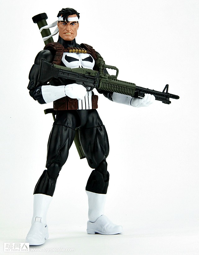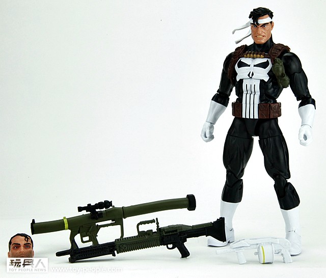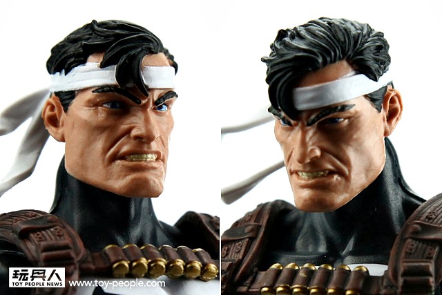 ▼ 開箱報告看似要結束了!但是還有神秘角色要登場! 他就是獨立發行的人氣角色“懲罰者”(Punisher)。 這個造型是以1988 年~1995.年間,由Carl Potts 與Jim Lee 所聯手繪製的懲罰者的第二部連載《懲罰者:戰爭日記》中的經典造型作為設計。 受到電影《藍波》的影響,所以使用了白色頭帶造型。 除了初代的緊身衣造型之外,這個版本也深受許多粉絲所喜愛。