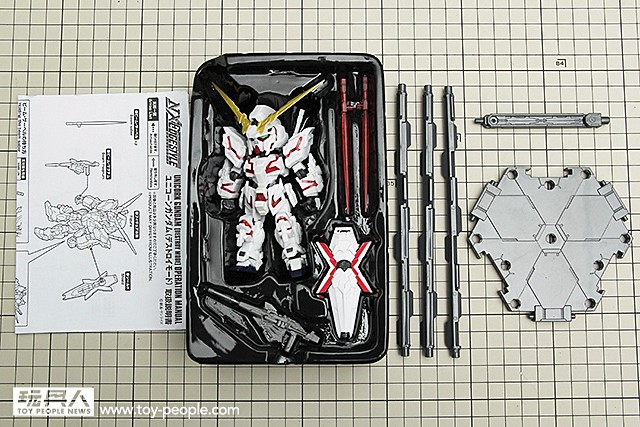 ▼ 首先我們做獨角獸鋼彈的開盒,可以看到除了基本的配備外,NXEDGE STYLE 系列的共通點在於都有附了六角形地台,當你收集越多數量就可以組裝成大型地台。