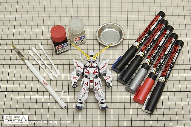 ▼ 經過了一番努力後終於完成了獨角獸鋼彈的補完計畫!由於獨角獸鋼彈的紅色感應框架是使用鋼彈麥克筆的金屬紅色,在遮蓋力上有個不錯的表現,塗裝時只需要小心不要超出線即可。