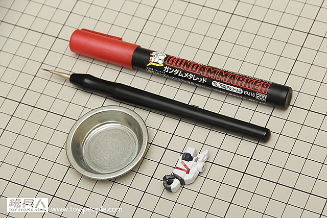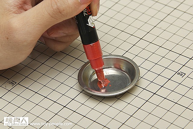 ▼ 首先我們針對手部背面的精神感應框架做補色。這邊使用鋼彈麥克筆的金屬紅。