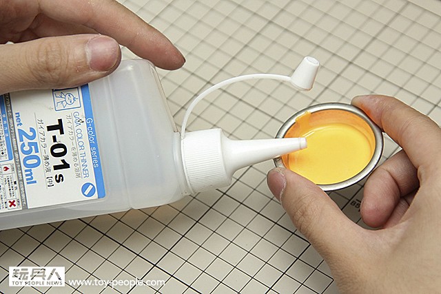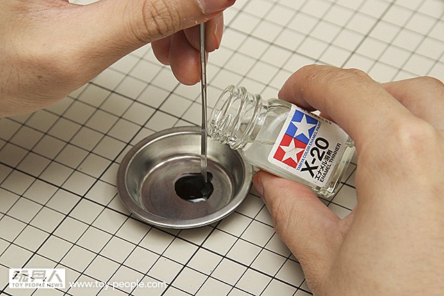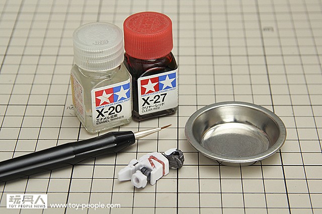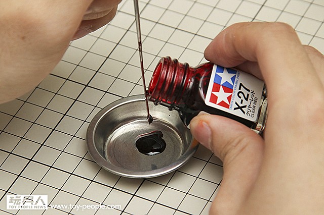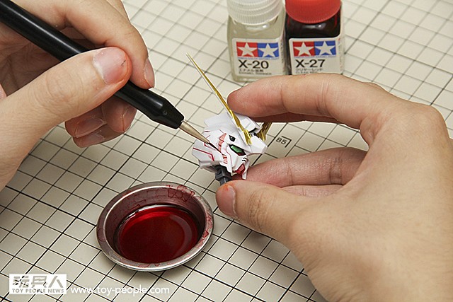 ▼ 再來是用琺瑯漆X-27透明紅和X-20溶劑來上墨線