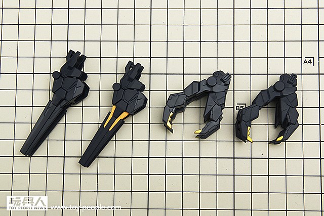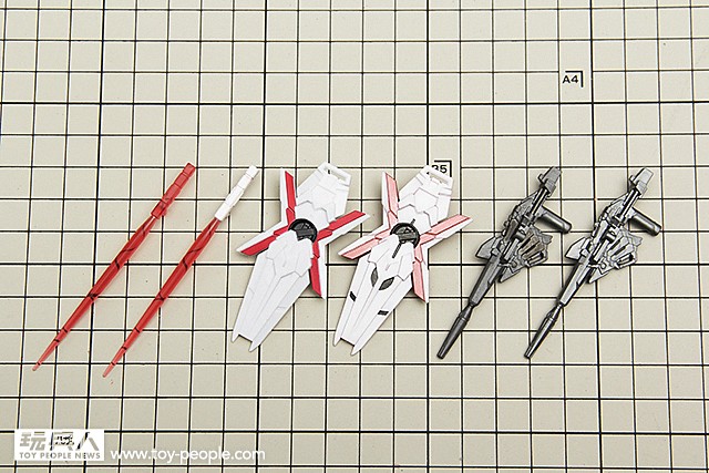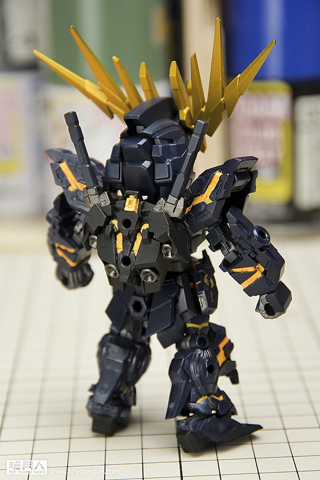 ▼ 報喪女妖的本體,和獨角獸鋼彈相同,差別在於天線的造型,而背包的塗料為消光黑,質感提升。而背面和獨角獸鋼彈相同,精神感應框架都沒有分件分色,需要自行補色。