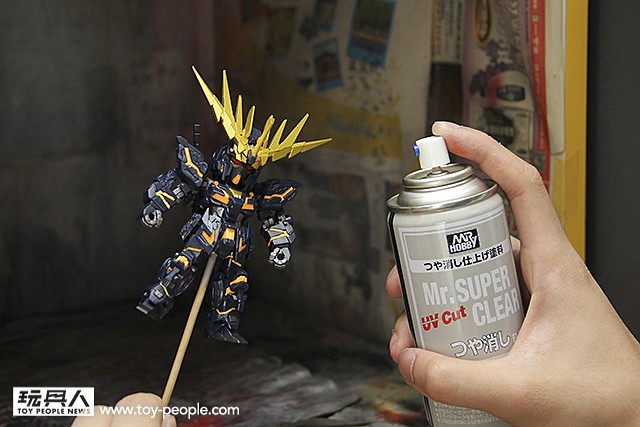 ▼ 最後噴上MR.HOBBY的抗UV的消光保護漆,以避免螢光漆在日後可能會有龜裂的現象。
