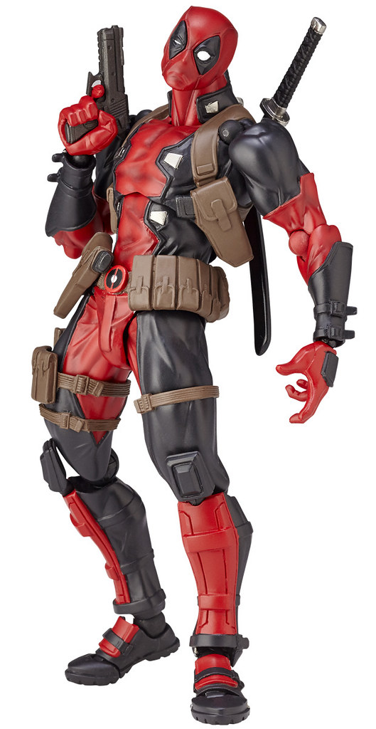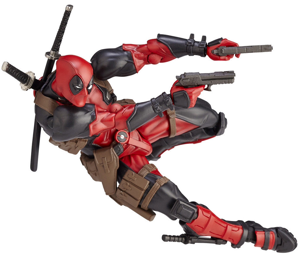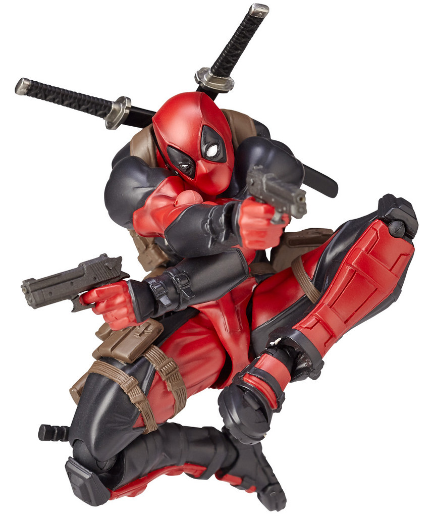 根據目前公開的情報,海洋堂將以“AMECOMI YAMAGUCHI”系列來推出許多漫畫版造型經典、熱門的歐美超級英雄與超級反派。 值得紀念的系列作第一彈,就是目前當紅的超暴力、超賤嘴英雄“死侍”。 這一款作品全高約160mm,全身使用了17個球狀關節,有高達36個可動部位;將附有四對不同姿勢的手部替換零件、兩把手槍、兩把武士刀、一個普通版頭雕以及一個能夠替換眼部表情的特殊頭雕。