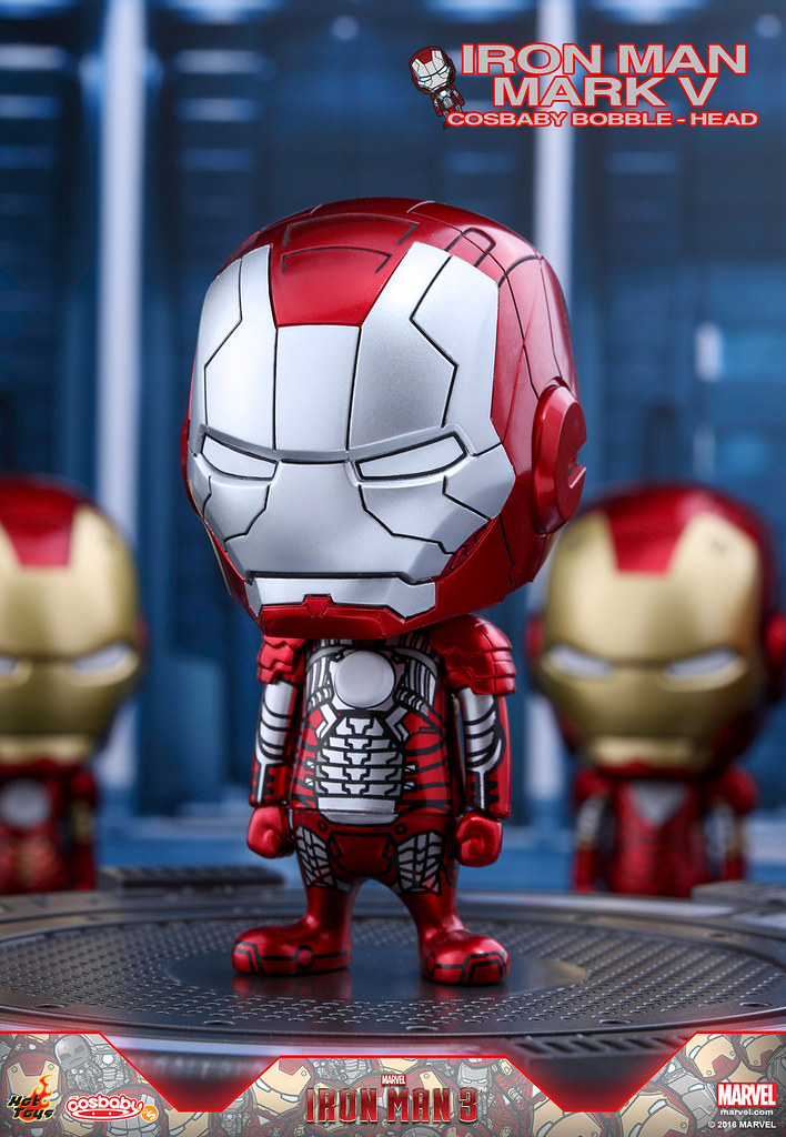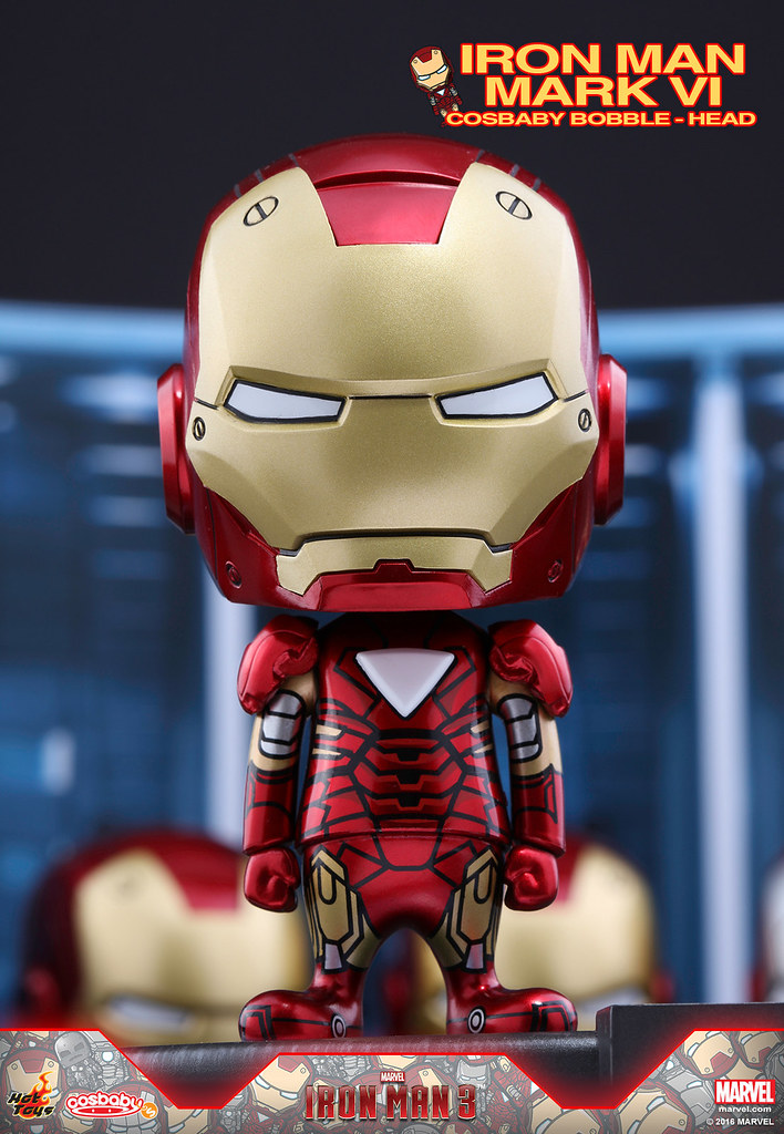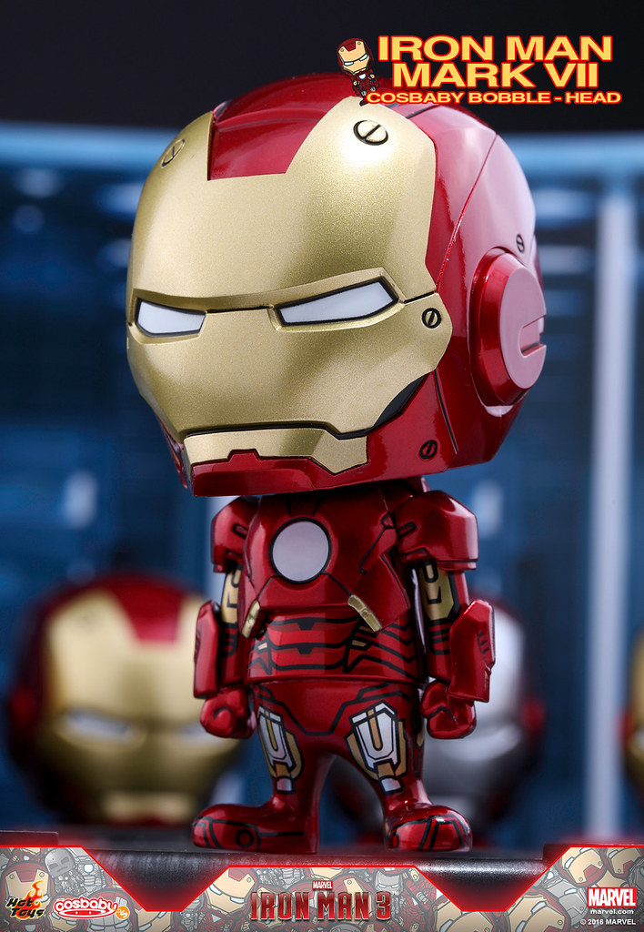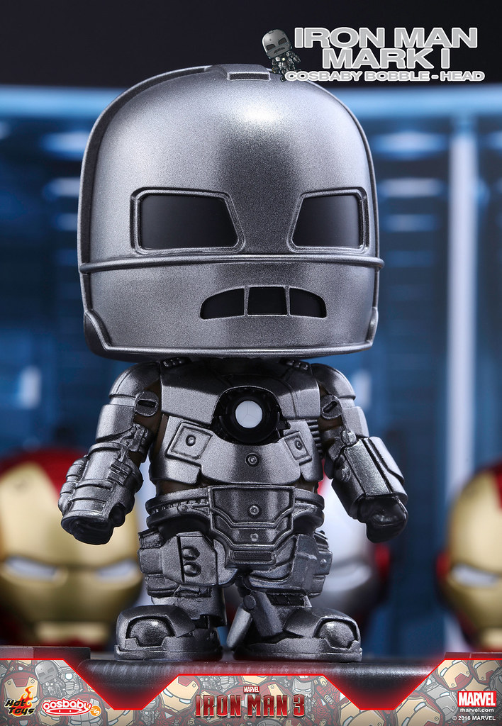 Hot Toys 公司為了慶祝在上海迪士尼所新開幕的旗艦店,推出了一系列的商品搶先在新店舖販售,特別在其旗下熱門Q 版玩具系列「Cosbaby」推出了MARVEL 超級英雄電影「鋼鐵人3」中一共七款的「馬克1~馬克7」(Iron Man Mark I-VII)鋼鐵人裝甲Cosbaby 作品;喜歡鋼鐵人的玩具人不要錯過了!